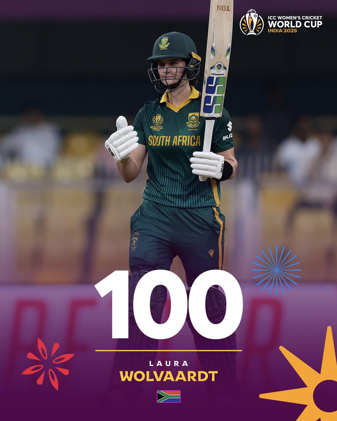 தனது இன்னிங்ஸில் லாரா வால்வார்ட்டின் 20 பவுண்டரிகள் மற்றும் நான்கு சிக்சர்களை அடித்தார்.